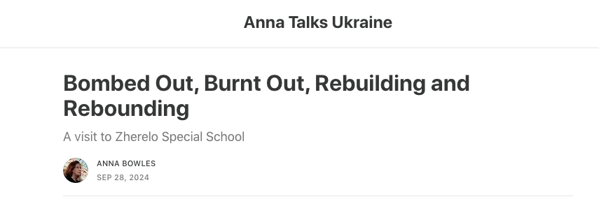 Back in February, Anne read about the reopening of Zherelo Special School in a post on Substack by Anna Bowles (*We highly recommend following Anna.) Anna has written about Zherelo Special School in several posts.
